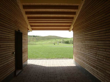 Ziel war die Gestaltung und Umsetzung eines Verwaltungs- und Wirtschaftsgebäude s mit Driving Range.
